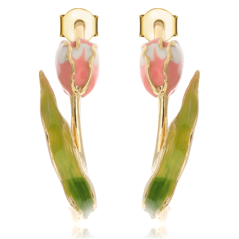 Hand-Painted Tulip Flower Hoop Style Earrings