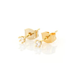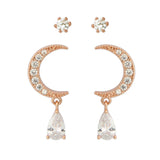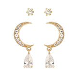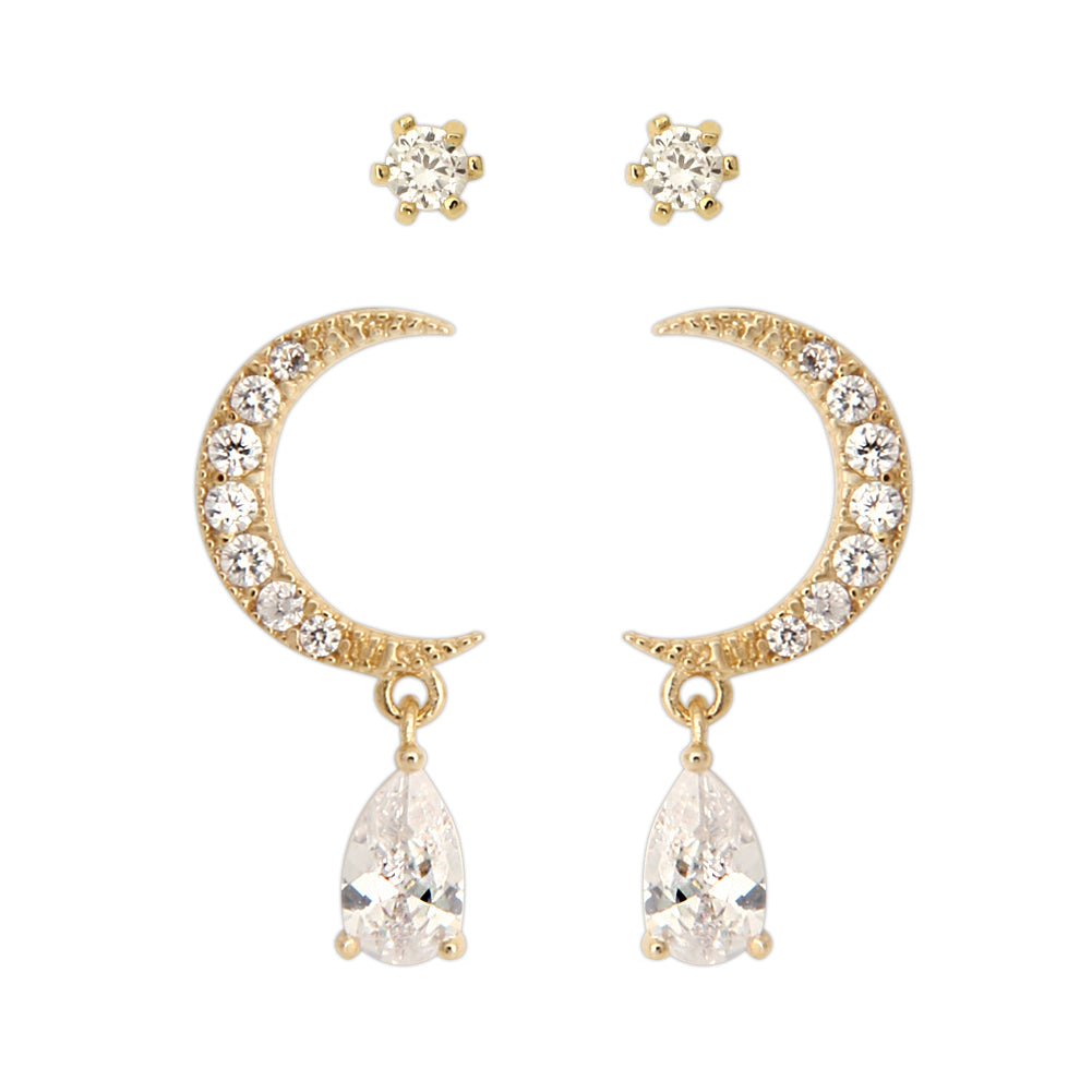 2 Set CZ Crescent Moon Earrings and Fake Diamond Studs 2 Pairs Earrings