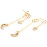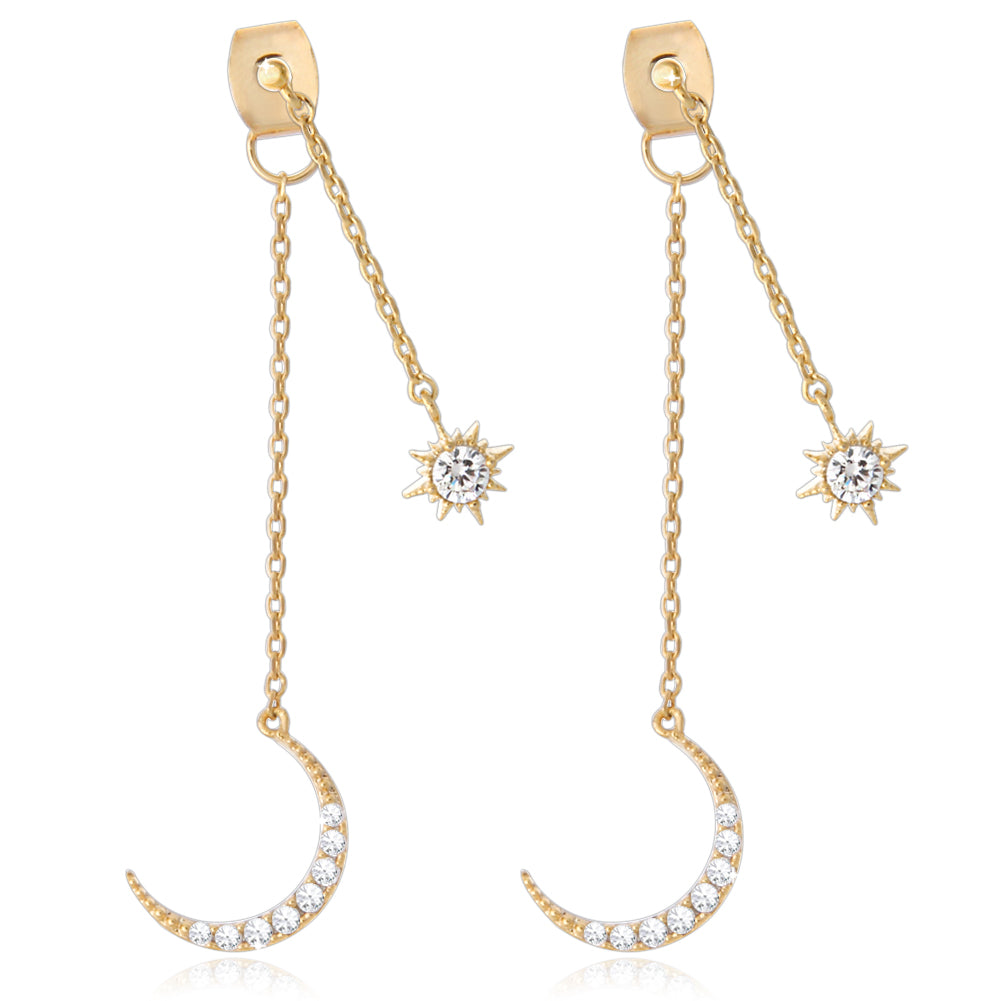 NO.1 Crescent Moon and Star Chain Drop Earrings