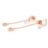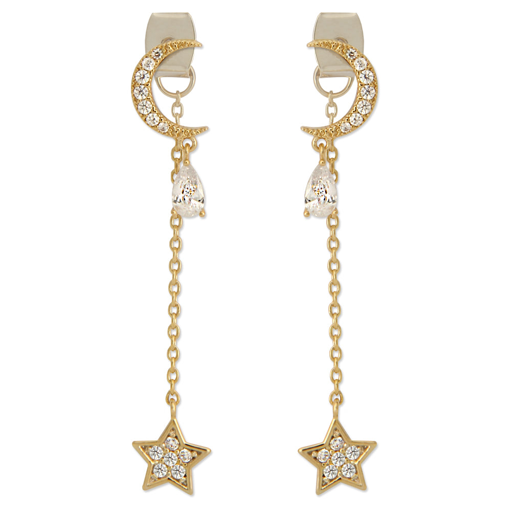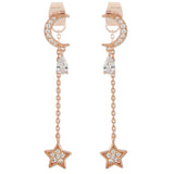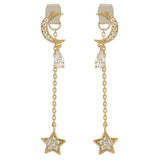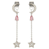 CZ Crescent Moon With Teardrop Crystal and Chain String Star Earrings
