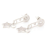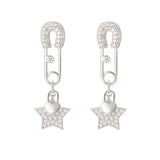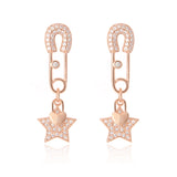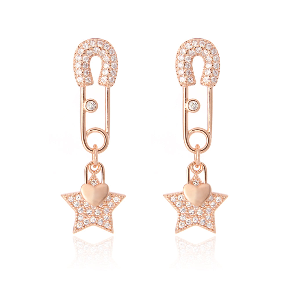 CZ Safety Pin and Star Heart Shape Lock Drop Earrings