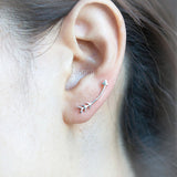 To put it on simply place it through your pierced hole like ordinary french wire earrings and then flip it to the side and slide it over your ear. Give them a gentle pinch to keep it in place.