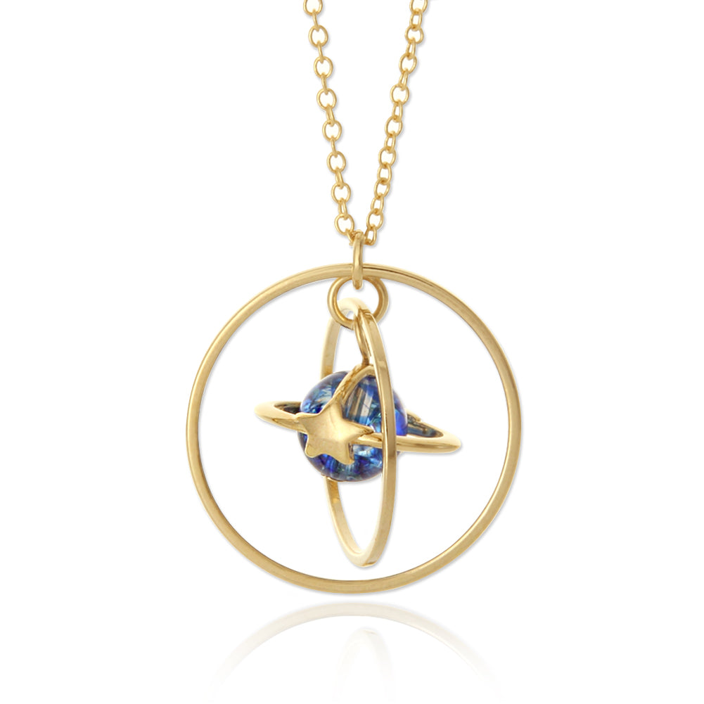 Circle Planet Necklace Moon and Star Saturn, 20"