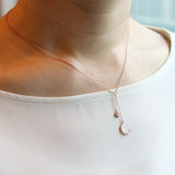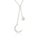 CZ Crescent Moon and Star Drop Necklace