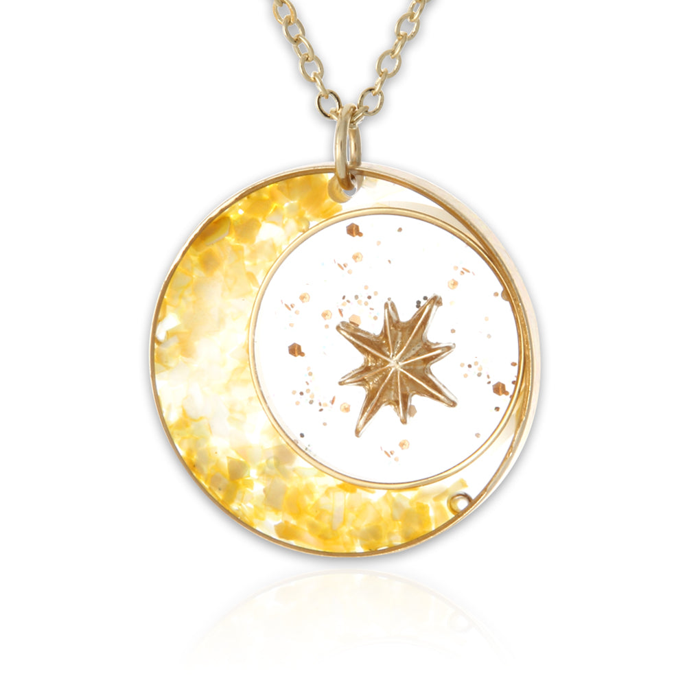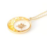 Epoxy Mother of Pearl 14K Gold Plated Crescent Moon and Star Necklace