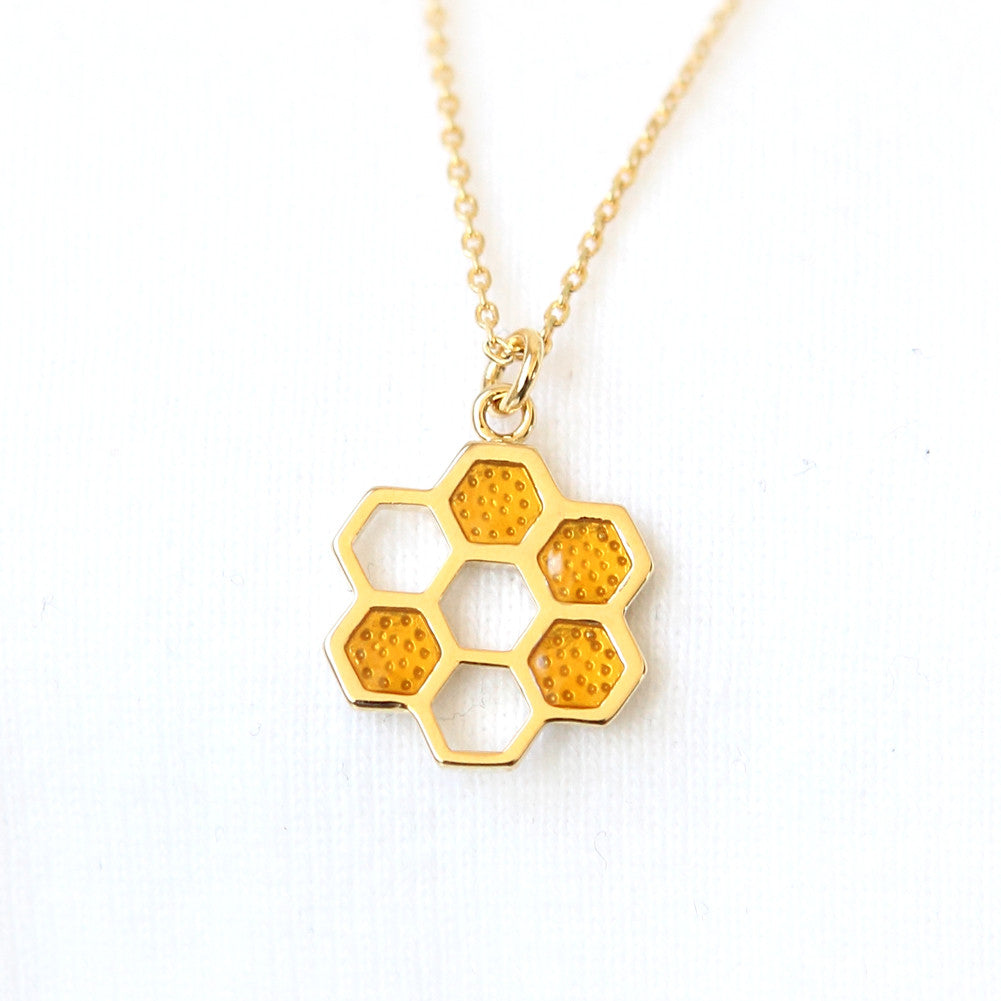 Honeycomb charm necklace.