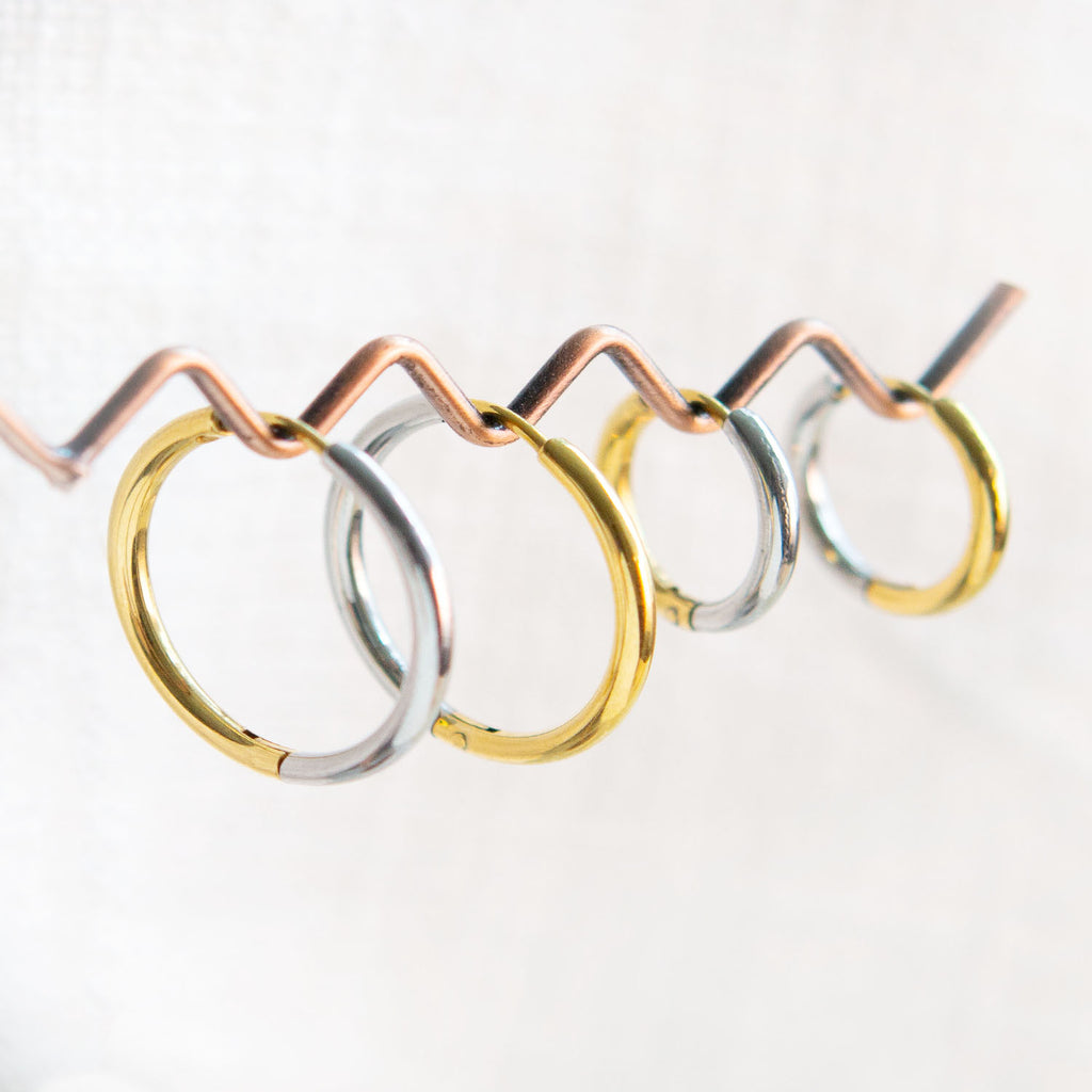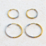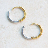 Simple 2 tone Hoop Huggie Stainless Steel Earrings
