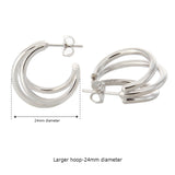 24MM Split Huggie Earrings | Triple Hoop Earrings
