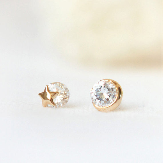 No.2 Crescent moon and tiny star Earrings with CZ