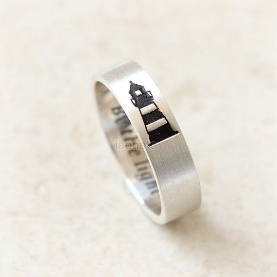 Personalized Vertical Lighthouse Ring in 925 sterling silver/ initials, date, words
