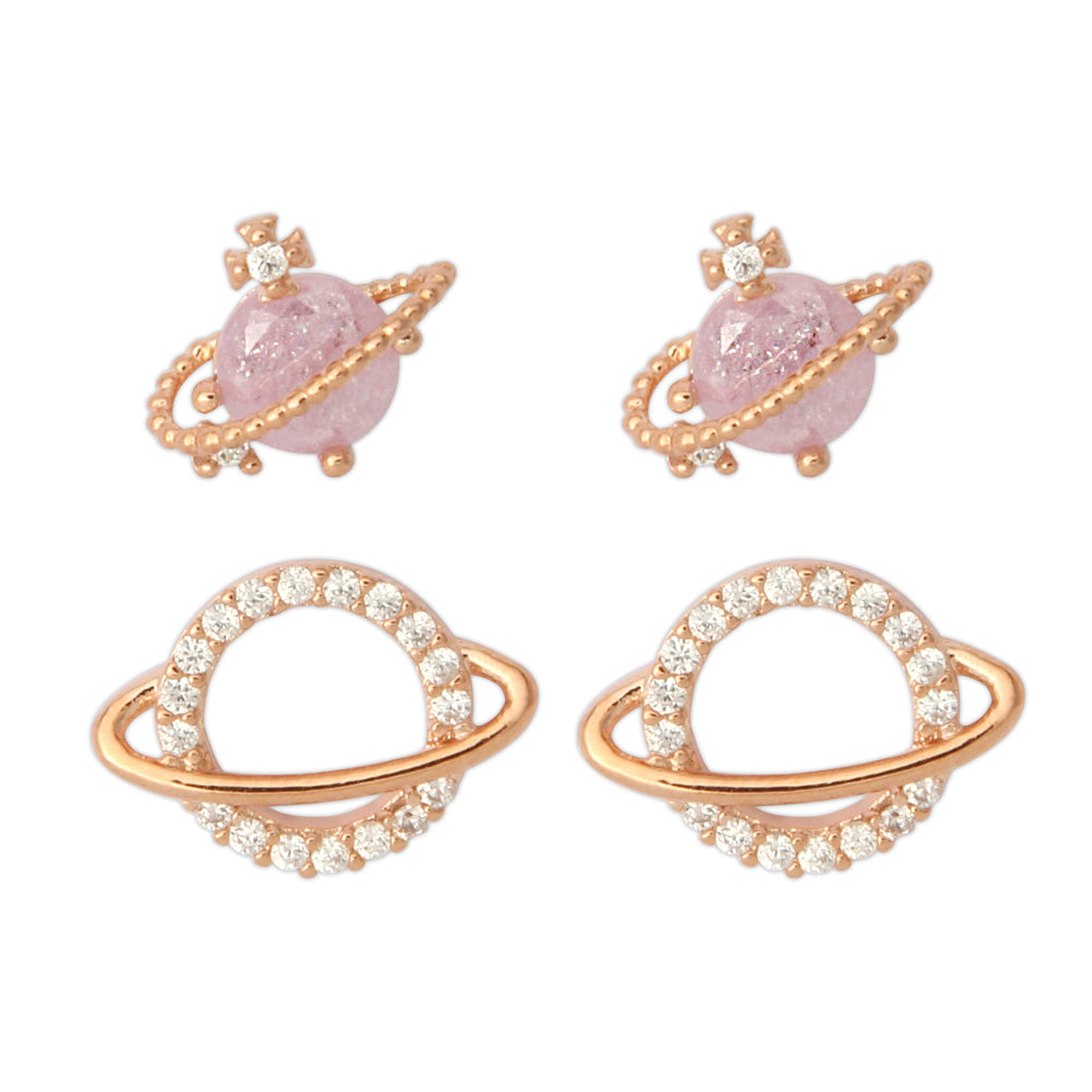 2 Set Planet Earrings Plated Brass Studs 2 Pairs Earrings