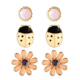 3 set of Ladybug Daisy and Round CZ earrings for Girls
